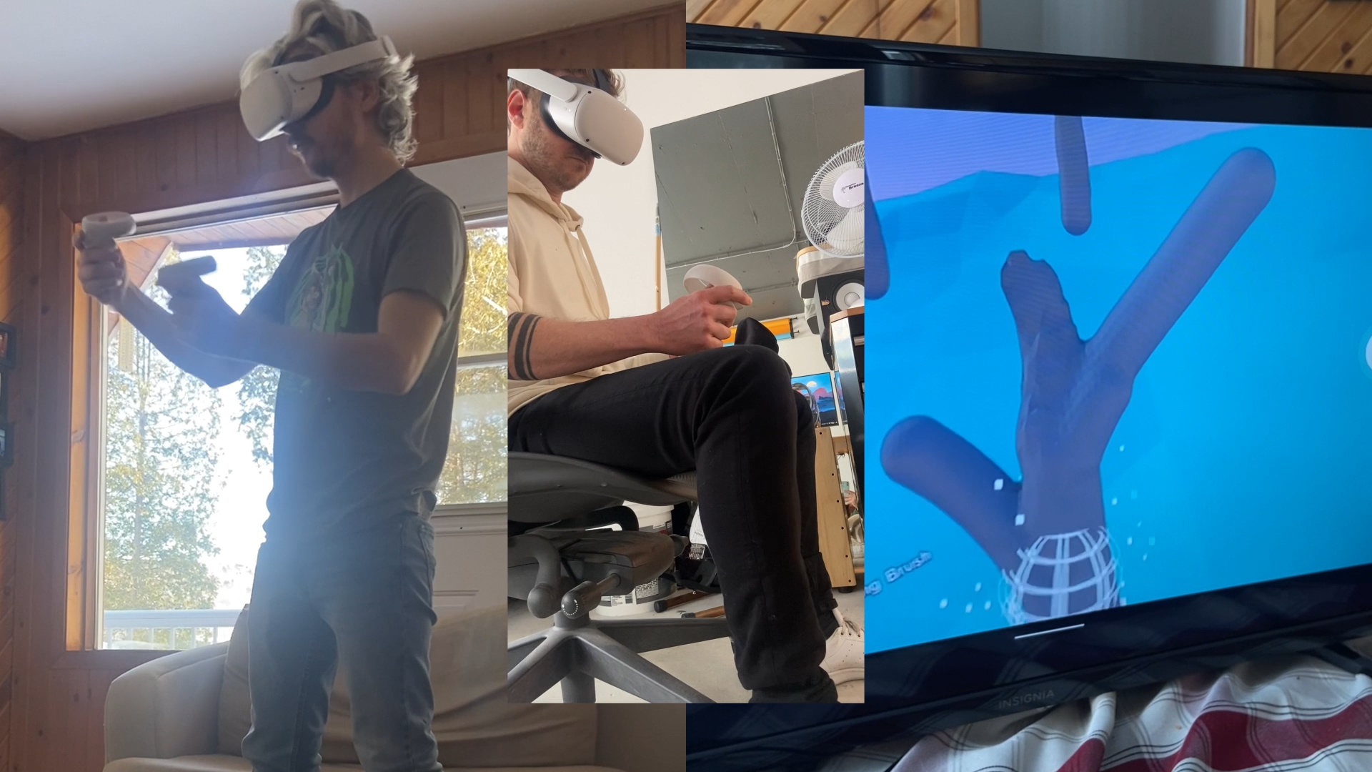 En créant tous les éléments du vidéoclip avec l'application SculptrVR, dans le casque Oculus Quest et en faisant traduire nos mouvements en MOCAP à nos personnages.